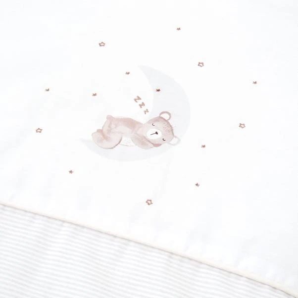 Boasting a beary cute baby bear print, this 4 tog quilt is the perfect addition to your little one’s bed. The cover has been made from 100% cotton with a 100% polyester filling for that extra touch of cosiness. This quilt features a reversible design so your little one can enjoy two designs in one. Coordinating fitted sheets, duvet cover and pillowcase sets available to purchase separately.