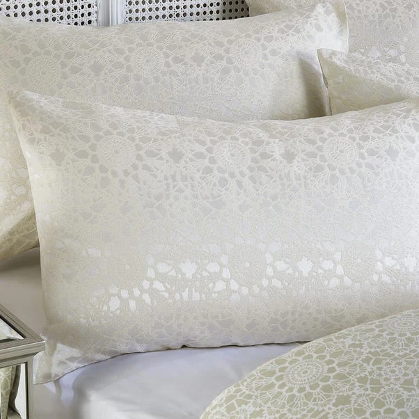 Detailed with a delicate crochet jacquard design with a printed reverse, this cream-coloured duvet cover is available in a range of sizes.