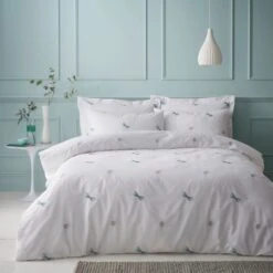 Dunelm Dragonflies Embroidery Seafoam Duvet Cover And Pillowcase Set
