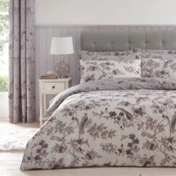 Crafted from a blend of polyester and cotton for comfort and durability, this duvet cover set is designed with a pale blue floral pattern. Finished with pale blue piping, this set comes with matching pillowcase(s) included and is available in a selection of sizes.